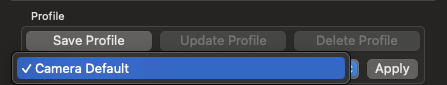 Step 3 - Revert to Camera Default. If the settings didn't work out and you want to start over, you can revert to the Default settings. Go to the Profile Section and select the drop down menu. You will see Camera Default. Select this and then select Apply and it will revert back to the Defaults.