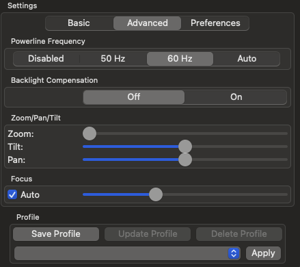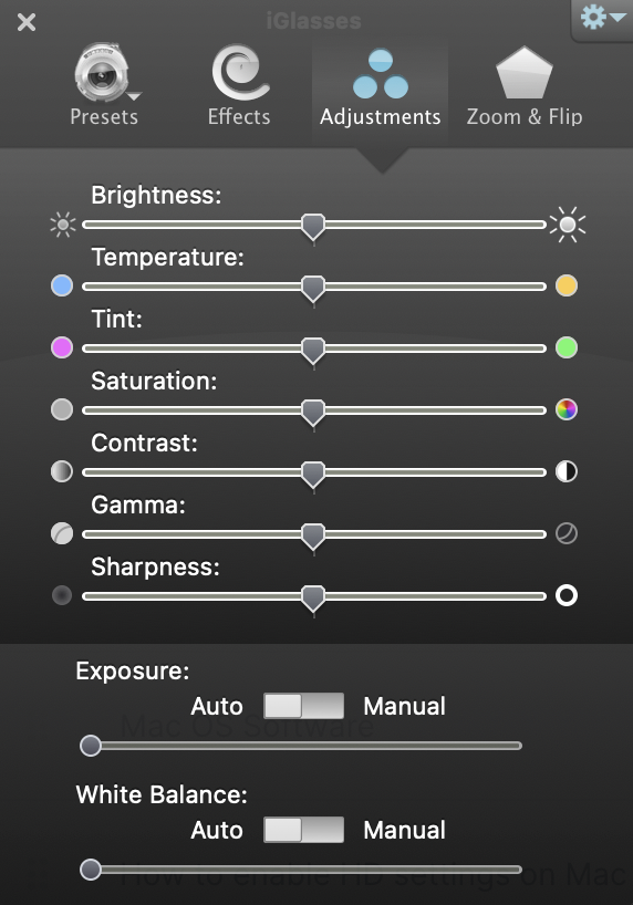 Note: Center Cam currently does not have it's own software for Mac OS. There are third party paid software that can be used to control the settings.
